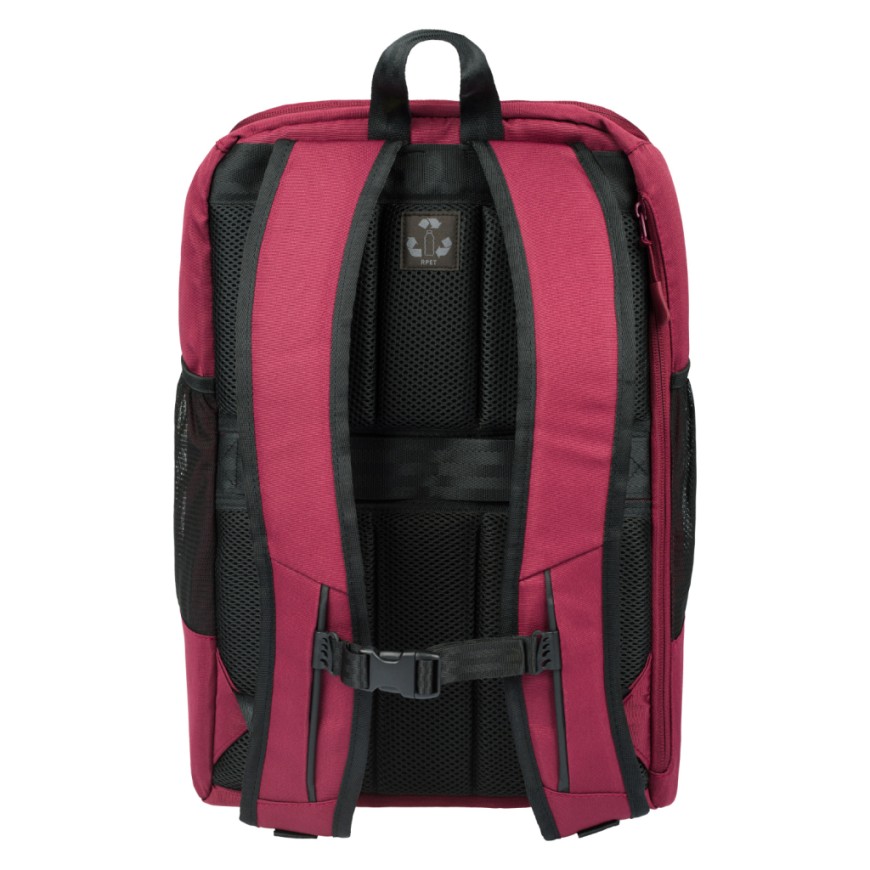 • Ideální na cesty jako příruční zavazadlo do letadla. Další výhodou je zádový pruh, který slouží k fixaci batohu na madlech kufru.