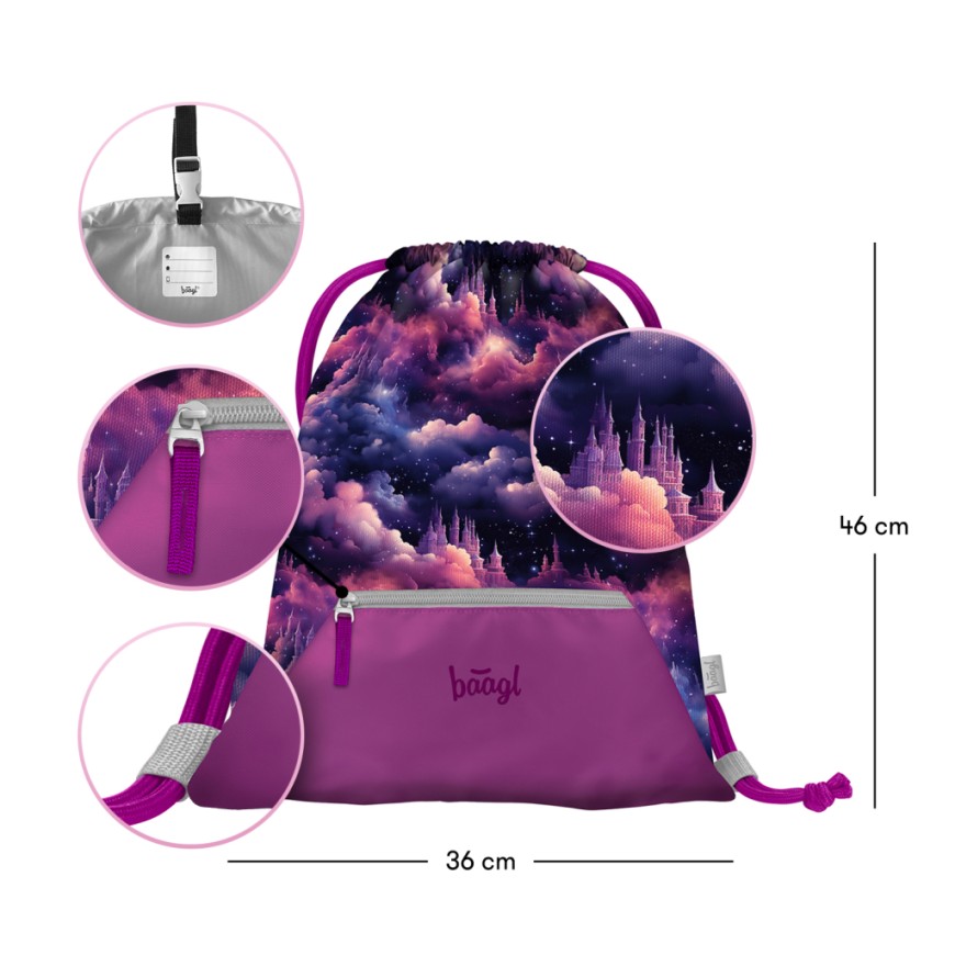• Sáček je vybaven karabinkou díky, které ho lze připevnit na aktovku.