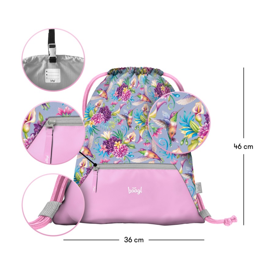 • Sáček je vybaven karabinkou díky, které ho lze připevnit na aktovku.