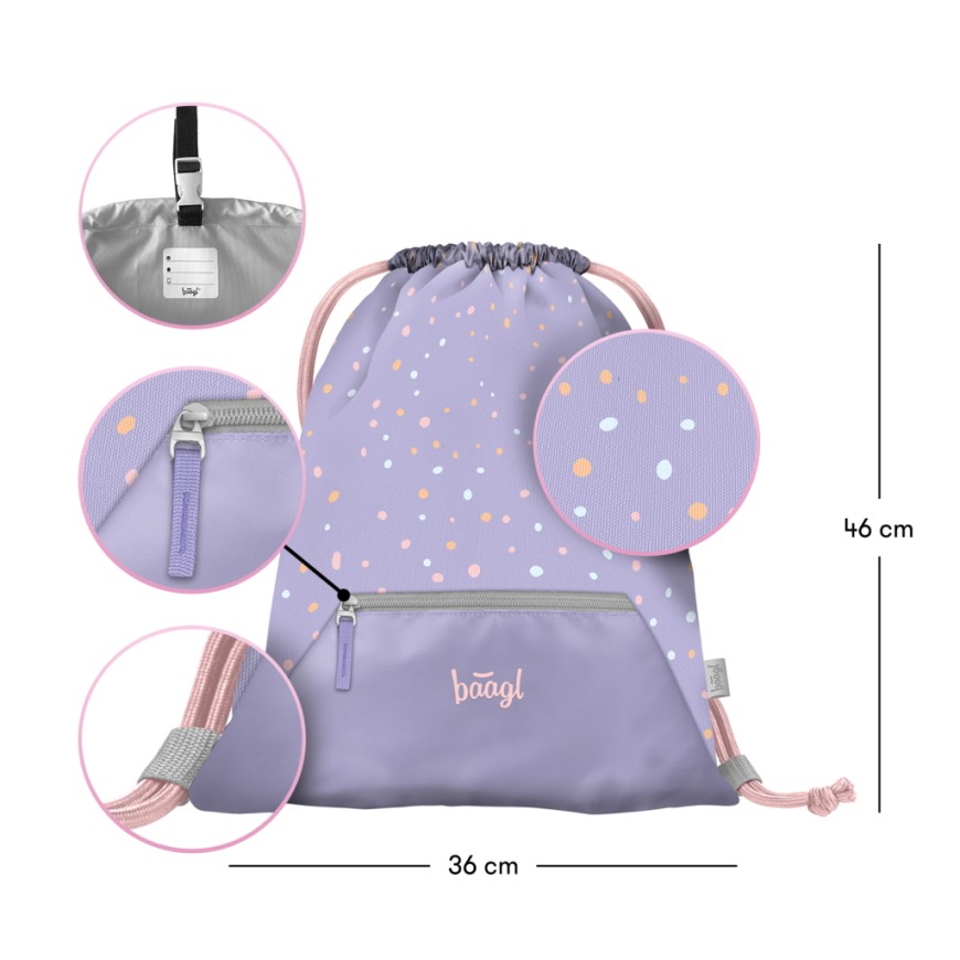 • Sáček je vybaven karabinkou díky, které ho lze připevnit na aktovku.