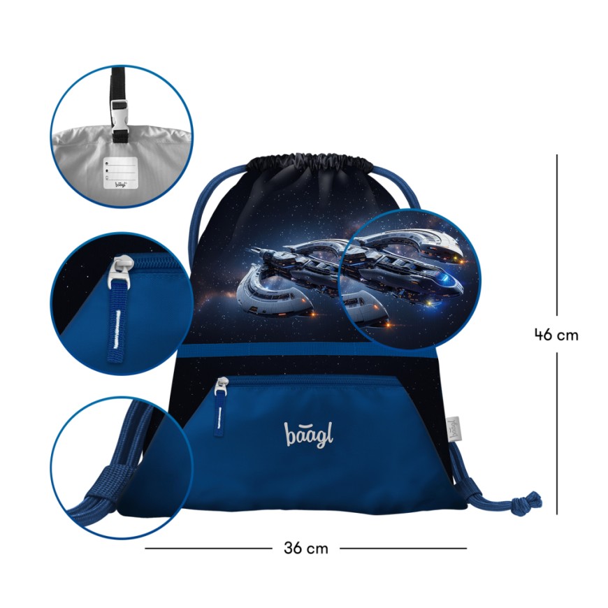 • Praktický sáček s kapsou na zip je vhodný nejen na přezůvky do školy, ale také na cesty, do města, na sportovní či jiné volnočasové aktivity.