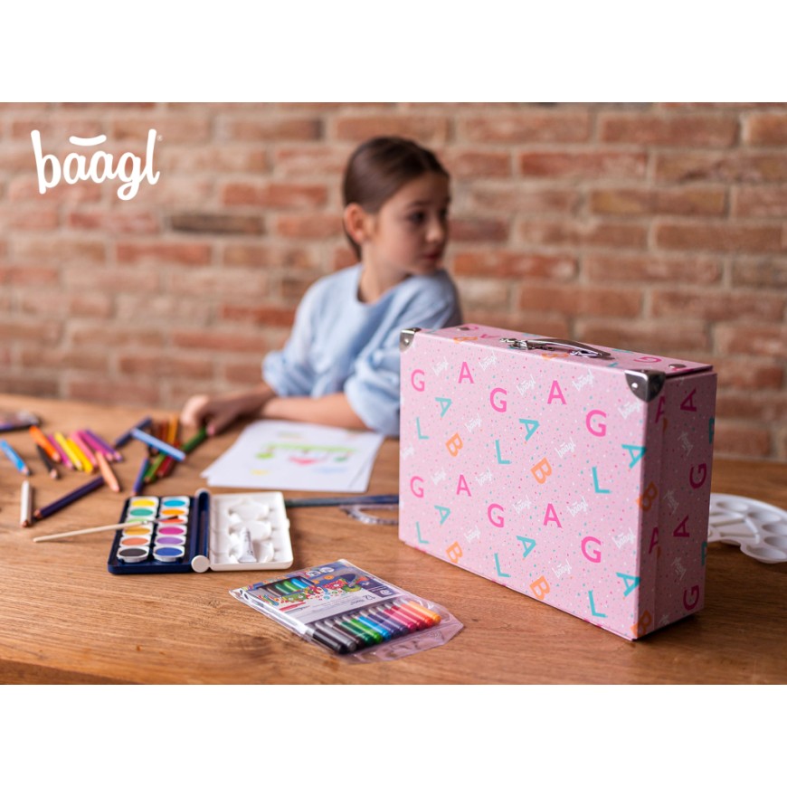 BAAGL Skládací školní kufřík Logo - růžový s kováním