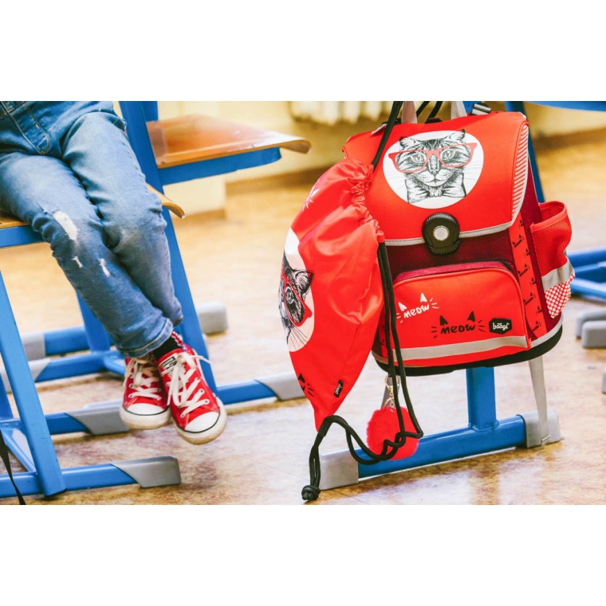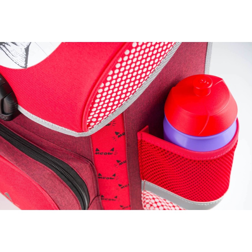 • Na klopě aktovky naleznete praktický elastický úchyt na penál, který vždy zajistí rychlý přístup k psacím potřebám každého školáka.