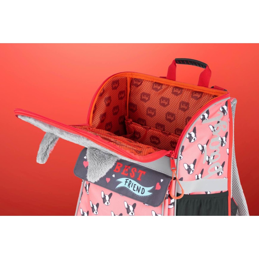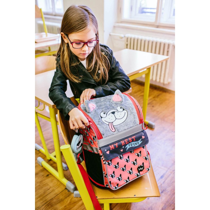 • Ergonomická školní aktovka s vyztuženým tělem, vnitřním organizérem a třemi oddělenými kapsami.