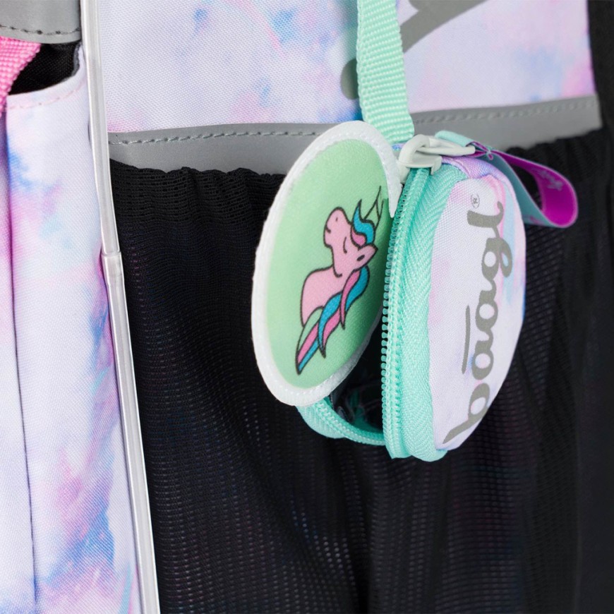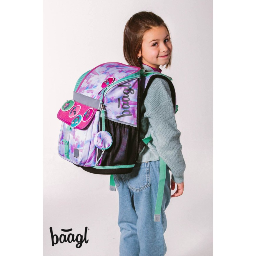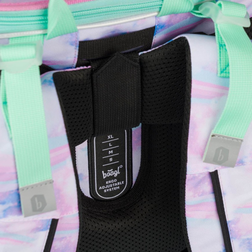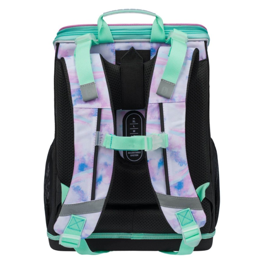 • Uvnitř aktovky je průhledná kapsa s rozvrhem a vnitřní organizér umožňující rovnoměrné rozložení hmotnosti, doplněný gumičkou pro fixaci.