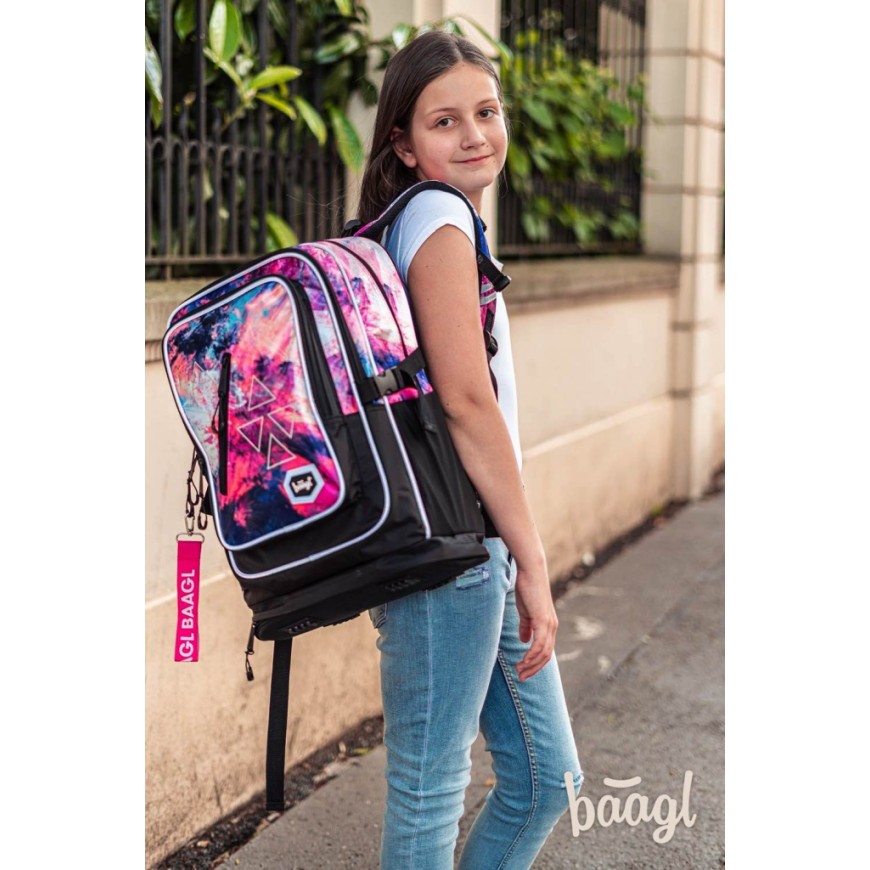 • Batoh je vybaven růžovým přívěskem s logem BAAGL.