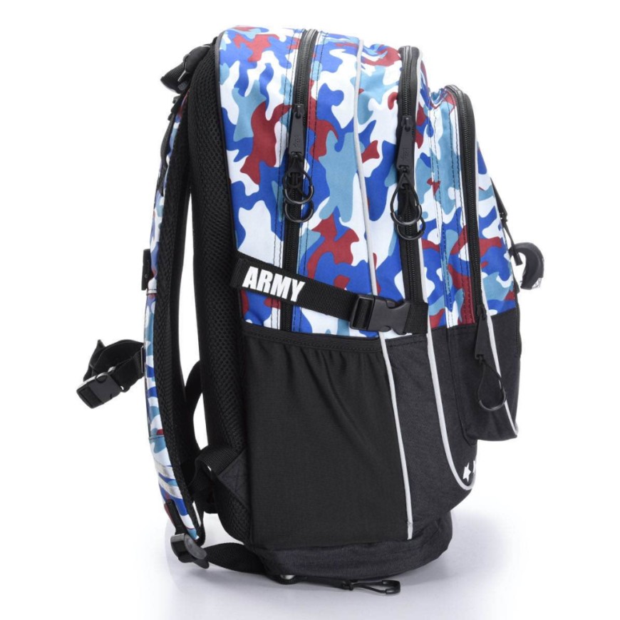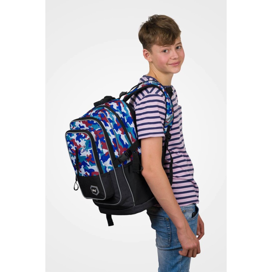 Tříkomorový školní batoh Cubic Army, vhodný od 3. třídy 1. stupně ZŠ a také pro 2. stupeň ZŠ. Batoh byl úspěšně testován v ITC Zlín.