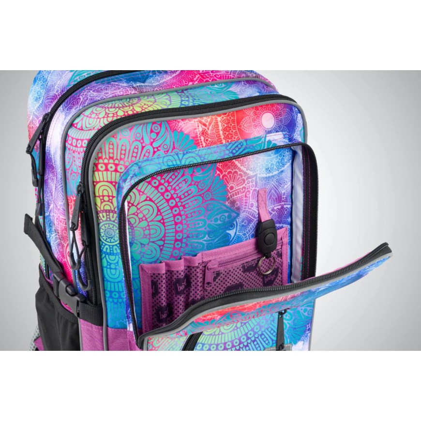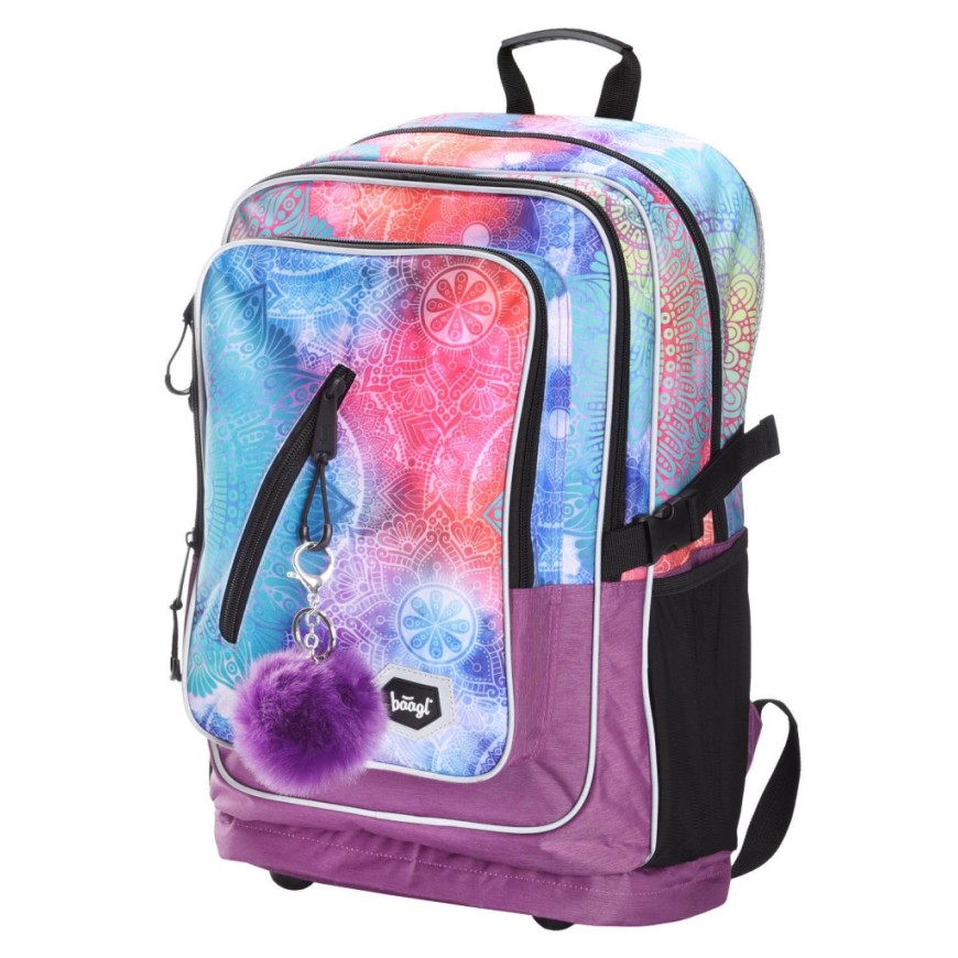 Tříkomorový školní batoh Mandala, vhodný od 3. třídy 1. stupně ZŠ a také pro 2. stupeň ZŠ. Batoh byl úspěšně testován v ITC Zlín.