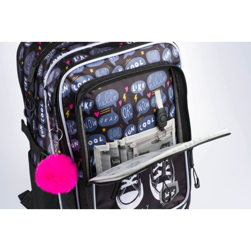 • Batoh je vybaven trendy chlupatým přívěskem.