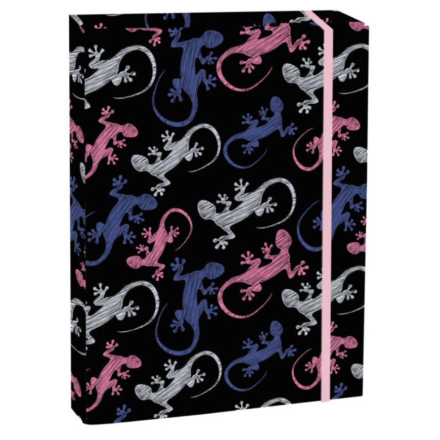 Laminované boxy na sešity jsou opatřeny vnitřními klopami, díky kterým dokumenty nevypadnou a pevné gumičky je udrží zavřené. Desky jsou k dispozici ve formátech A4 a A5.