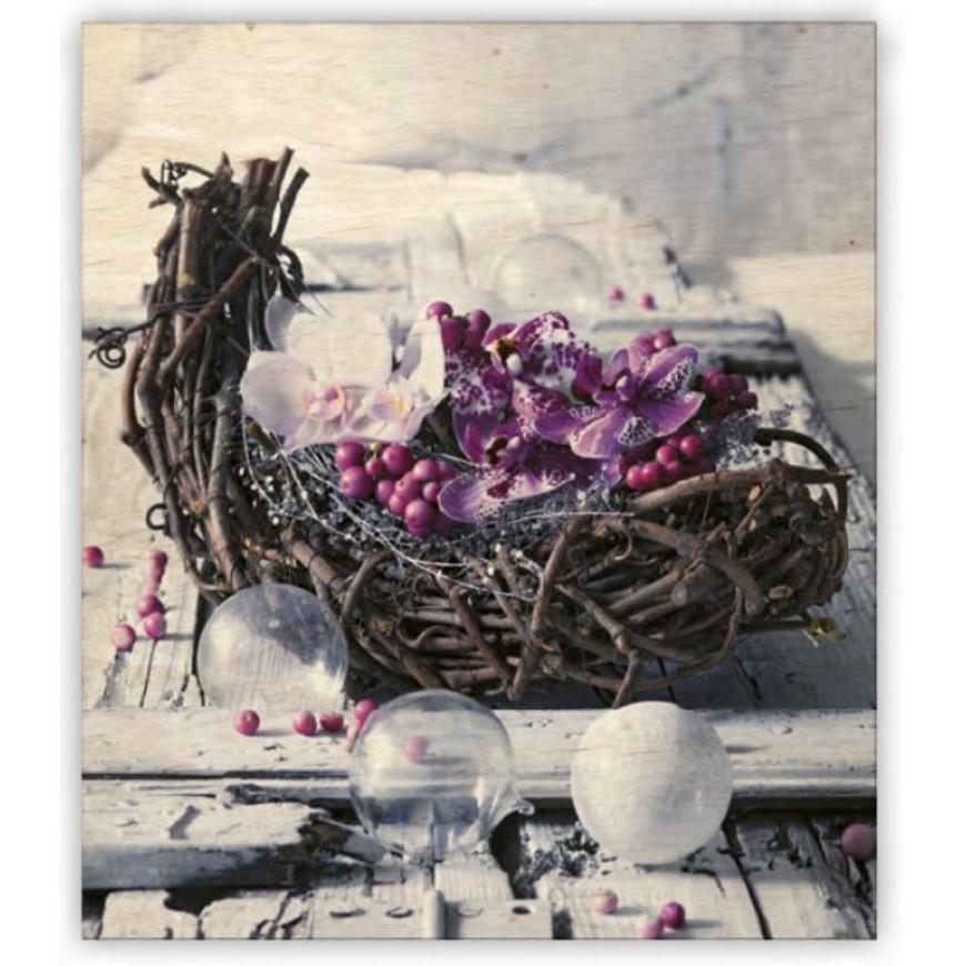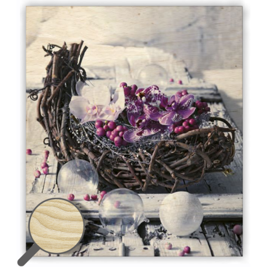 Každý kus je originál - obrazový motiv je vytištěn na dřevěném materiálu s přírodní strukturou. Materiál obrazu: kvalitní broušená březová překližka Formát obrazu: 45 x 52 cm 1 háček na zavěšení obrazu Visačka pro vaše věnování