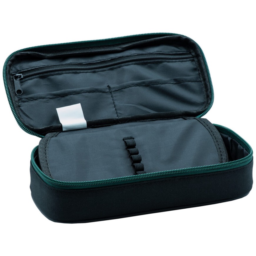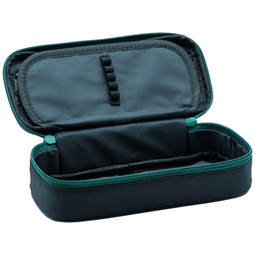 Školní etue s klopou bez vybavení obsahuje 10 poutek, 3 kapsičky.Pouzdra do školy či tzv. etue, jsou ideálním doplňkem pro větší školáky a studenty.Uvnitř školního pouzdra je větší komora pro uložení tužek a školních potřeb.Vnitřní klopa pouzdra má na každé straně 5 pevných gumiček pro uložení psacích potřeb.Na vnitřní straně víka je praktická kapsa na zip, na které jsou další 2 malé kapsičky pro uložení drobností.Rozměry: 22 x 10,5 x 6 cm.