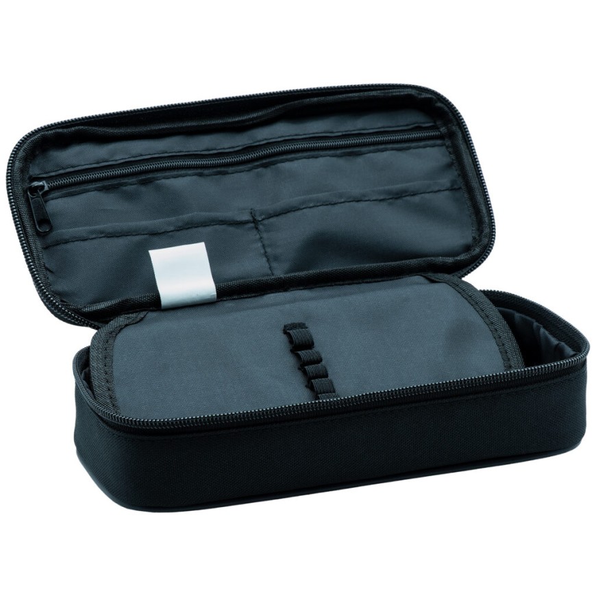 Vnitřní klopa pouzdra má na každé straně 5 pevných gumiček pro uložení psacích potřeb.