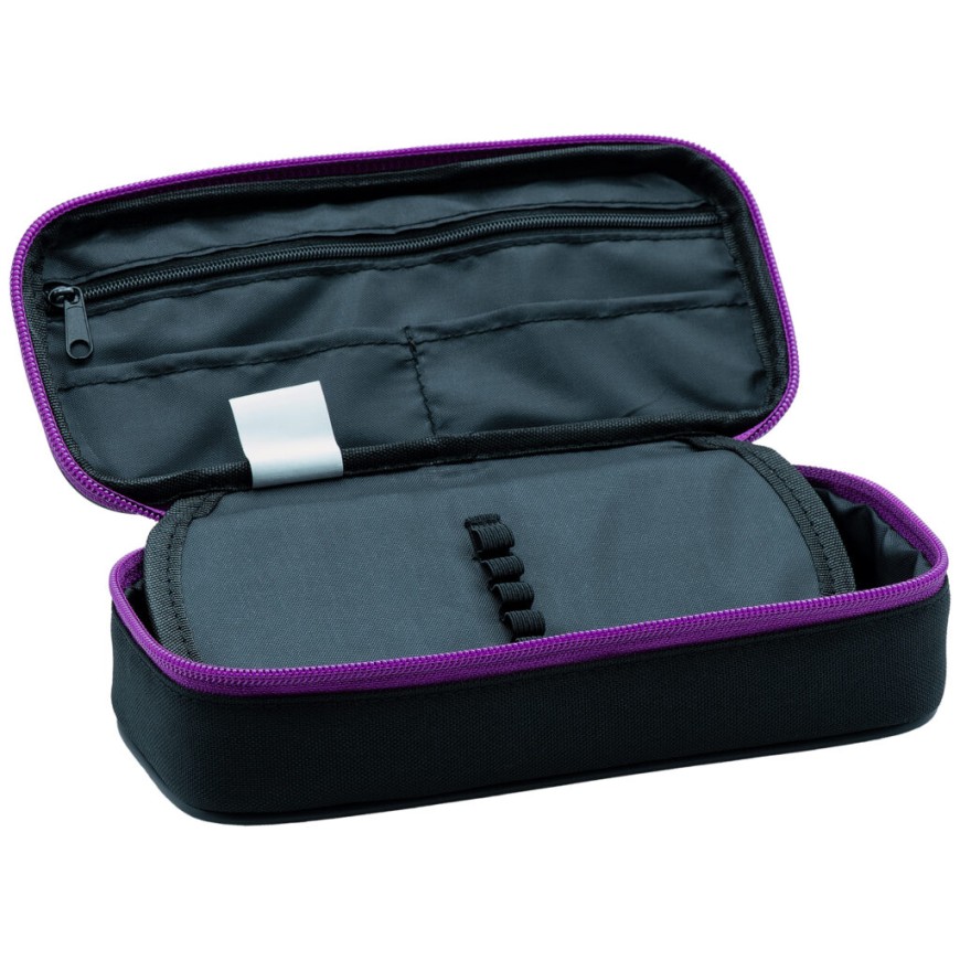 Vnitřní klopa pouzdra má na každé straně 5 pevných gumiček pro uložení psacích potřeb.