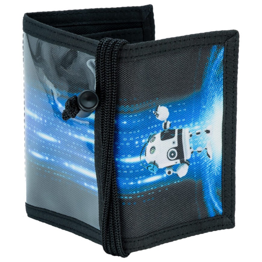 Peněženka se zavře suchým zipem a zavěsí na krk látkovou šňůrkou.
