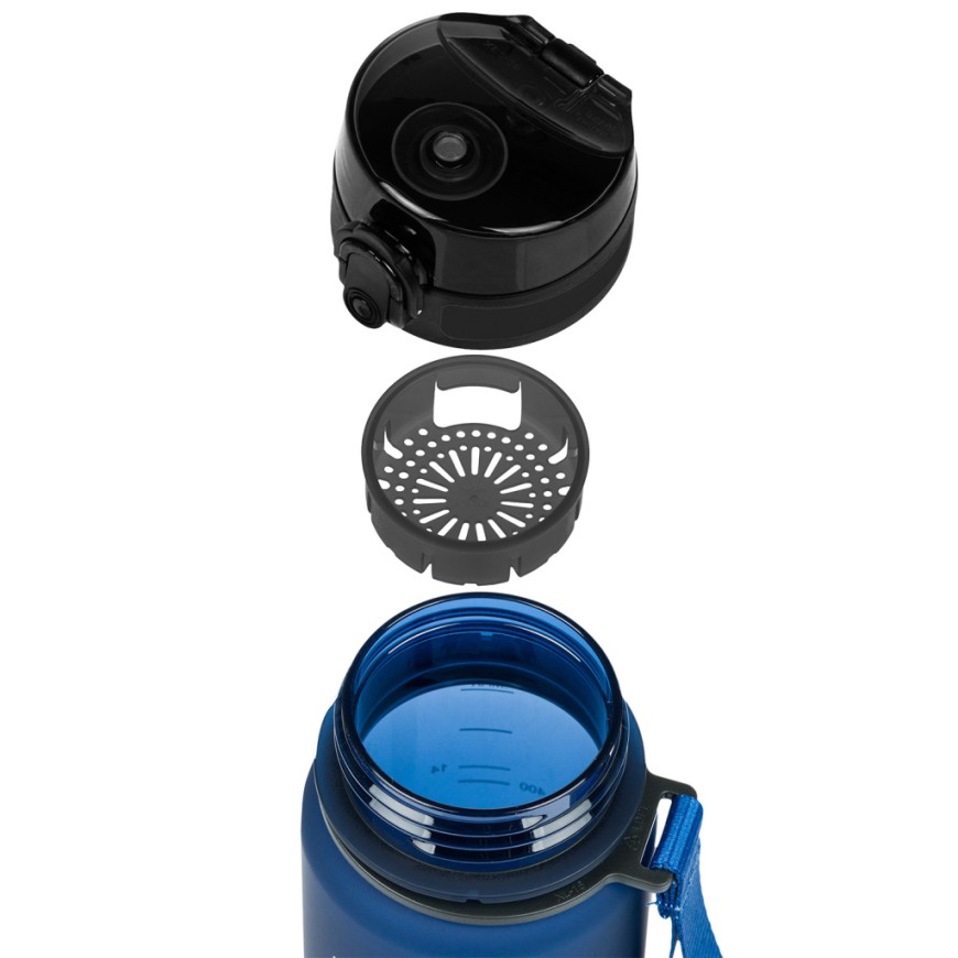 Uzamykatelné víčko nepropustí ani kapku nápoje a zaručuje jednoduché a intuitivní používání. Součástí láhve je i sítko, díky kterému můžete láhev použít i na limonády s ovocem nebo čaj (materiál je vhodný i pro horké nápoje). K láhvi je připevněné také poutko pro pohodlné nošení v ruce.
