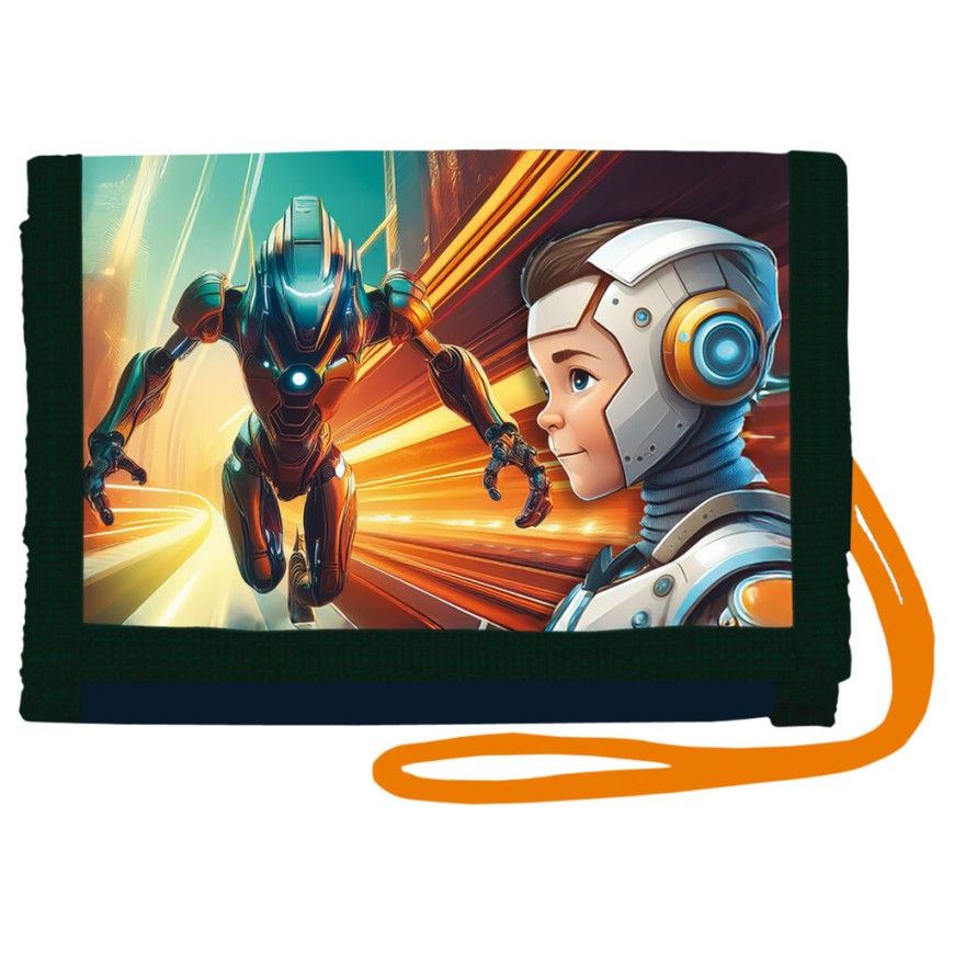 Peněženka se zavře suchým zipem a zavěsí na krk látkovou šňůrkou.