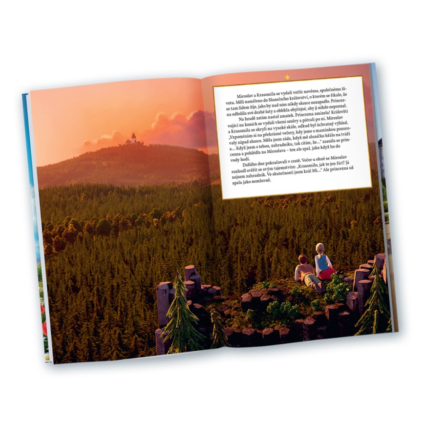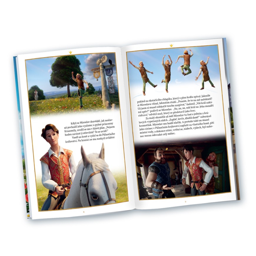 Znáte Pyšnou princeznu, legendární český film na motivy pohádky Potrestaná pýcha od Boženy Němcové? Tak tenhle příběh nafoukané princezny Krasomily a moudrého krále Miroslava, který se do ní zamiloval a rozhodl se ji napravit, se dočkal úplně nového zpracování! Vidět ho můžete třeba v kině jako animovaný film – anebo si pořiďte naši knížku! Je plná krásných barevných obrázků a zavede vás do pohádkového světa, kde se setkáte právě s hrdiny filmu Pyšná princezna. Společně s nimi můžete prožívat napínavý příběh lásky princezny Krasomily a krále Miroslava znovu a znovu.